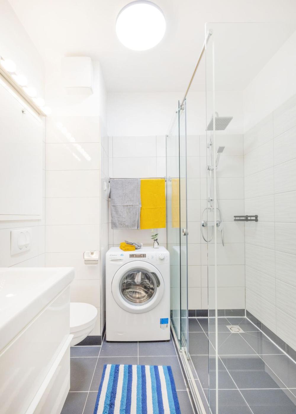 One-Bedroom Apartment. Boasting a private entrance, this air-conditioned apartment features 1 living room, 1 separate bedroom and 1 bathroom with a shower and a hairdryer. The well-fitted kitchen has a stovetop, a refrigerator, a dishwasher and kitchenware. Featuring a terrace with garden views, this apartment also features a washing machine and a flat-screen TV with streaming services. The unit has 2 beds.